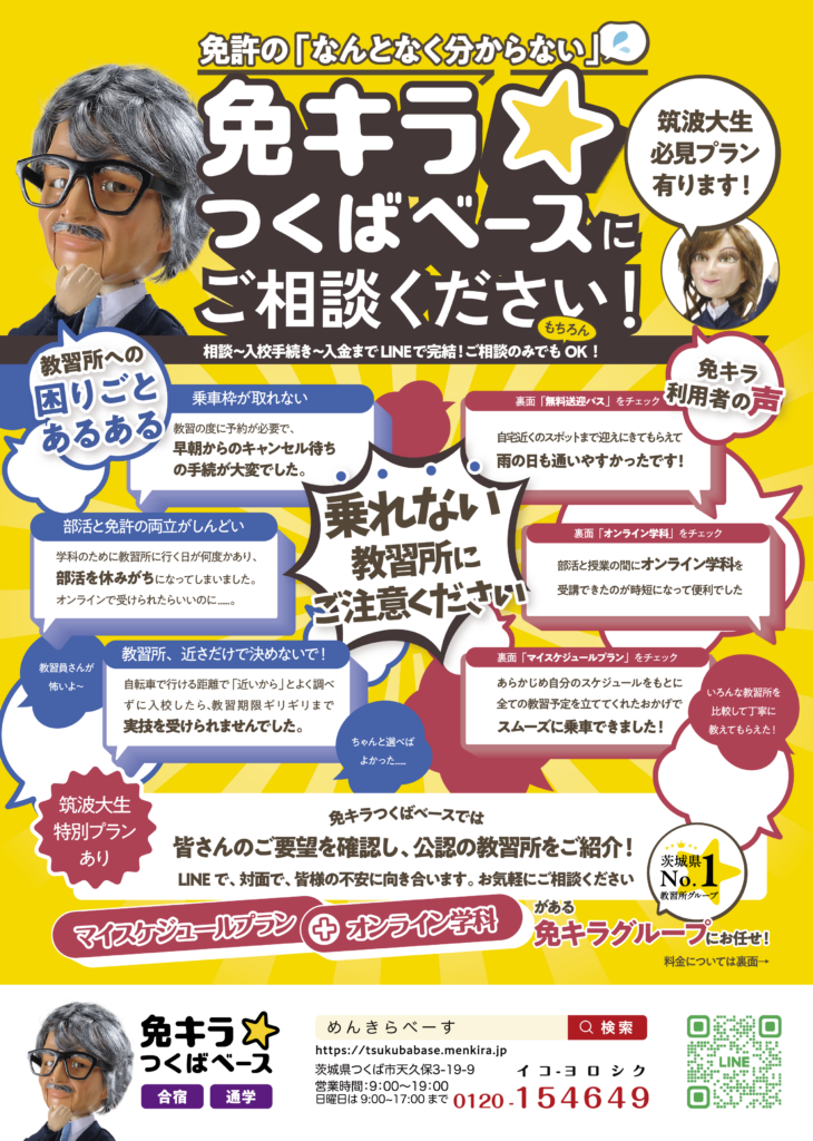 ※当日のキャンセルは無料対象外です。教習をキャンセルする場合は、教習の前営業日までに教習所へご連絡ください。ご連絡がない場合はキャンセル料が発生いたします。